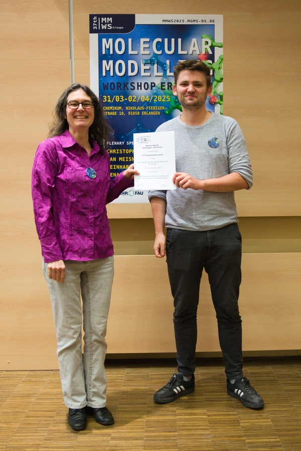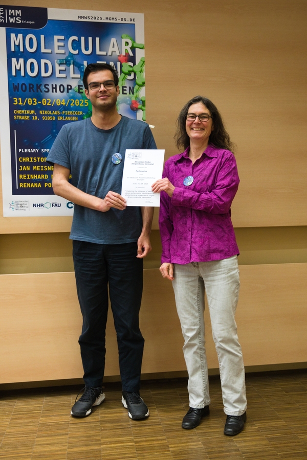 The 37th Molecular Modeling Workshop 2025 is scheduled to take place in Erlangen from March 31st to April 2nd 2025 and offers an ideal platform for researchers, postdocs, and PhD students to showcase their findings to the molecular modeling community. This event enables young scientists to connect with peers from academia and industry, discuss their research, and receive valuable input from experienced researchers. Presentations of early-stage and ongoing research projects are highly encouraged.